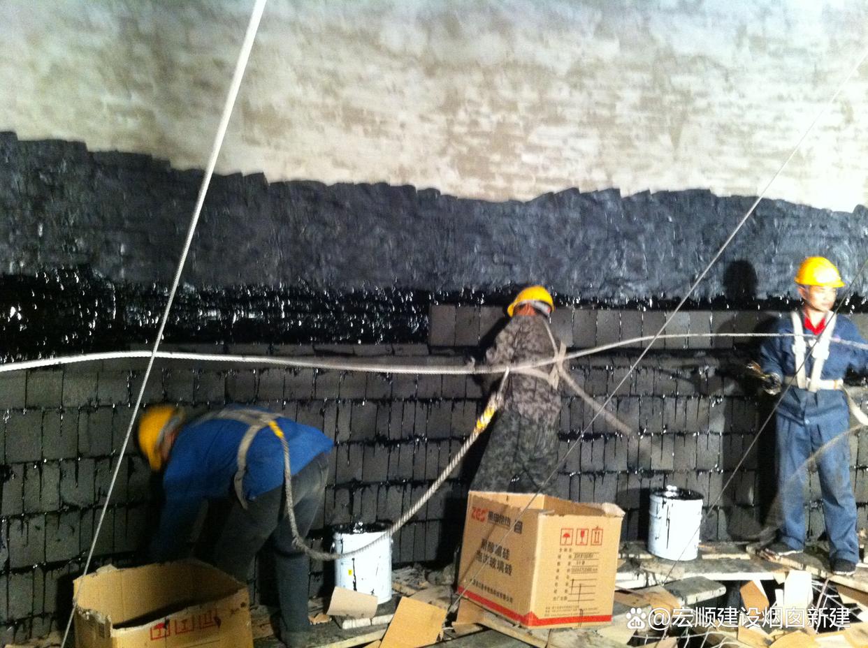 勾縫處理:用耐酸膠泥填充磚縫,勾成凹縫,防止煙氣滲透。